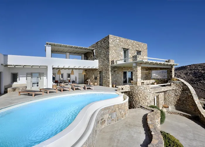 この寝室4室のヴィラはミコノス空港から5㎞圏内で、エーゲ海海事博物館などの文化的名所から自動車で15分以内です。 アグリカルチュラル ミュージアムはこの浴室4室のヴィラから6キロメートルで、レナズ ハウスから約7キロメートル先にあります。